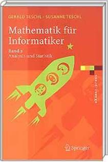 [Teschl05] Teschl, Gerald und Teschl, Susanne "Mathematik für Informatiker" Springer Verlag Bd. 1, Diskrete Mathematik, Juli 2005, 25 € Bd. 2, Analysis und Statistik, März 2006,. 25 € (sehr gute Stoffpräsentation, viele aktuelle Anwendungsbsp. für Informatiker, griffige Erklärungen. Übungsaufgaben in verschiedenen Kategorien: Kontrollfragen, Aufwärmübungen, anspruchsvollere Übungen. Hat hohen Überlappungsgrad mit meiner Vorlesung) |