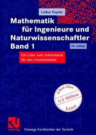Papula, Lothar: "Mathematik für Ingenieure und Naturwissenschaftler" Vieweg-Verlag (ein Klassiker mit vielen ausführlichen Beispielen) Band 1+2, 11. Aufl. 2007, ISBN:3-528-94236-3, 27 € (Grundlagen, Folgen, Funktionen, Differential- und Integralrechnung, Potenzreihenentwicklungen) Band 2, 10. Aufl. 2001, ISBN:3-528-94237-3, 29 € (Lineare Algebra, mehrdimensionale Differential- und Integralrechnung, gewöhnliche Differentialgleichungen) |