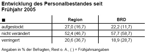 Man kann bei den hiesigen Unternehmen eine gedämpfte Erwartungshaltung verspüren. Im Vergleich zum Herbst 2004 und Frühjahr