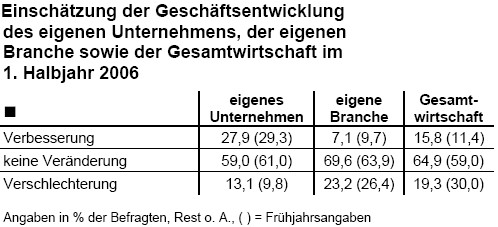 2005 war dort noch ein leichter Optimismus zu verzeichnen, so ist die Erwartungshaltung in diesem Vergleich eher mit etwas